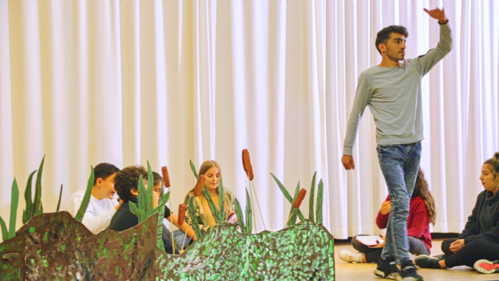 Wir arbeiten gemeinsam an einer Geschichte, die wir anschließend als Drehbuch für ein Theaterstück oder Filmprojekt nutzen werden. Zusätzlich lernen wir verschieden Arten des Musizierens kennen, machen Hintergrundmusik oder fördern besondere musikalische Talente für Soloauftritte. Außerdem arbeiten wir mit außerschulischen Kooperationspartnern, u. a. im Bereich Tanz und Kostüm. Bei Bedarf kannst du auch in diesen Bereichen dein Können unter Beweis stellen.